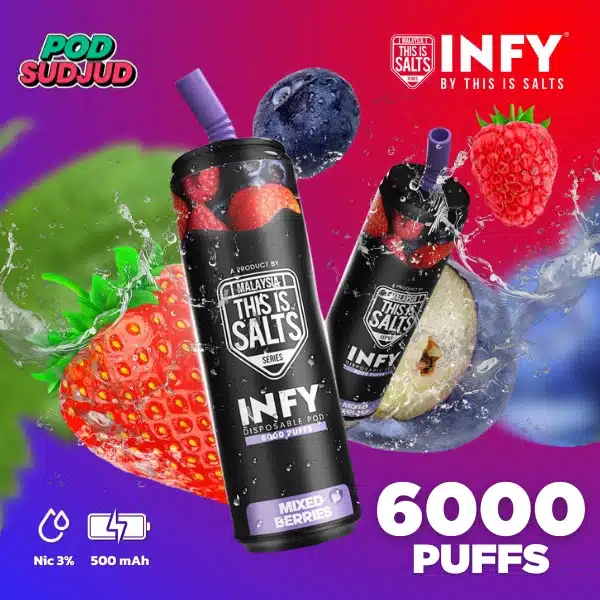 INFY 6000 Puffs พอตใช้แล้วทิ้งจากแบรนด์ This is Salts สูบได้ยาวถึง 6,000 คำ ฟีลสูบนุ่ม กลิ่นชัดเต็มรสชาติ มาพร้อมแบตเตอรี่ 500 mAh ชาร์จไวด้วยพอร์ต Type-C และน้ำยาซอลนิค 12ml รสนิคเข้มข้น ดีไซน์กะทัดรัด พกง่าย เหมาะทั้งมือใหม่และสายสูบ ต้องลองสักครั้งเพื่อประสบการณ์สูบที่เต็มอิ่ม
