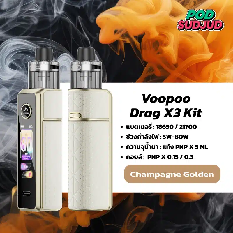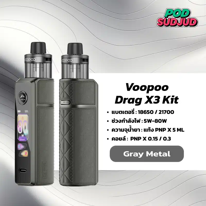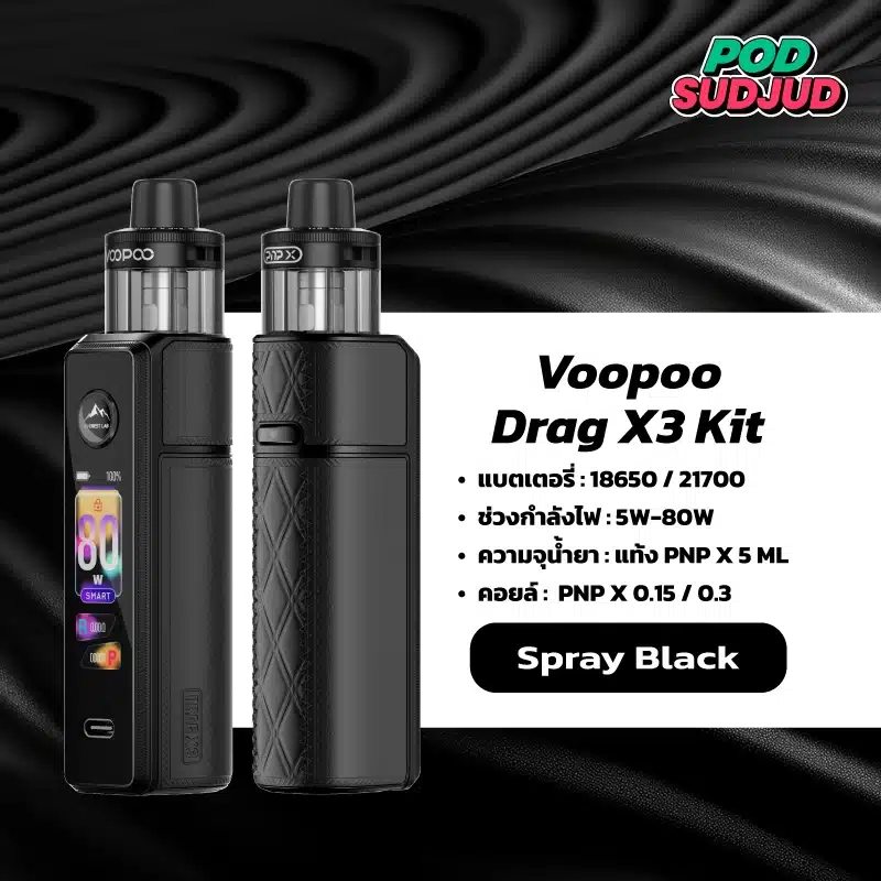 VOOPOO Drag X3 เป็นพอดไฟฟ้ารุ่นล่าสุดที่ต่อยอดความสำเร็จจากตระกูล Drag ซึ่งได้รับความนิยมมาอย่างยาวนาน โดดเด่นด้วยแนวทางการออกแบบที่เรียบหรู ทันสมัย และเลือกใช้วัสดุคุณภาพเพื่อการใช้งานในชีวิตประจำวัน เหมาะสำหรับผู้ที่ต้องการพอดไฟฟ้าระดับพรีเมียมที่ให้ความมั่นใจทั้งด้านการใช้งานและภาพลักษณ์ในทุกโอกาส